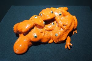 かつて南米のとある秘境には、オレンジヒキガエルというとても美しい色をした帰るが生息していました。ある時を境にその姿を消してしまいました。おそらくもう二度と見られない、彼らの朱色の漆みたいな鮮やかな姿への追憶として制作しました。 - 会 場