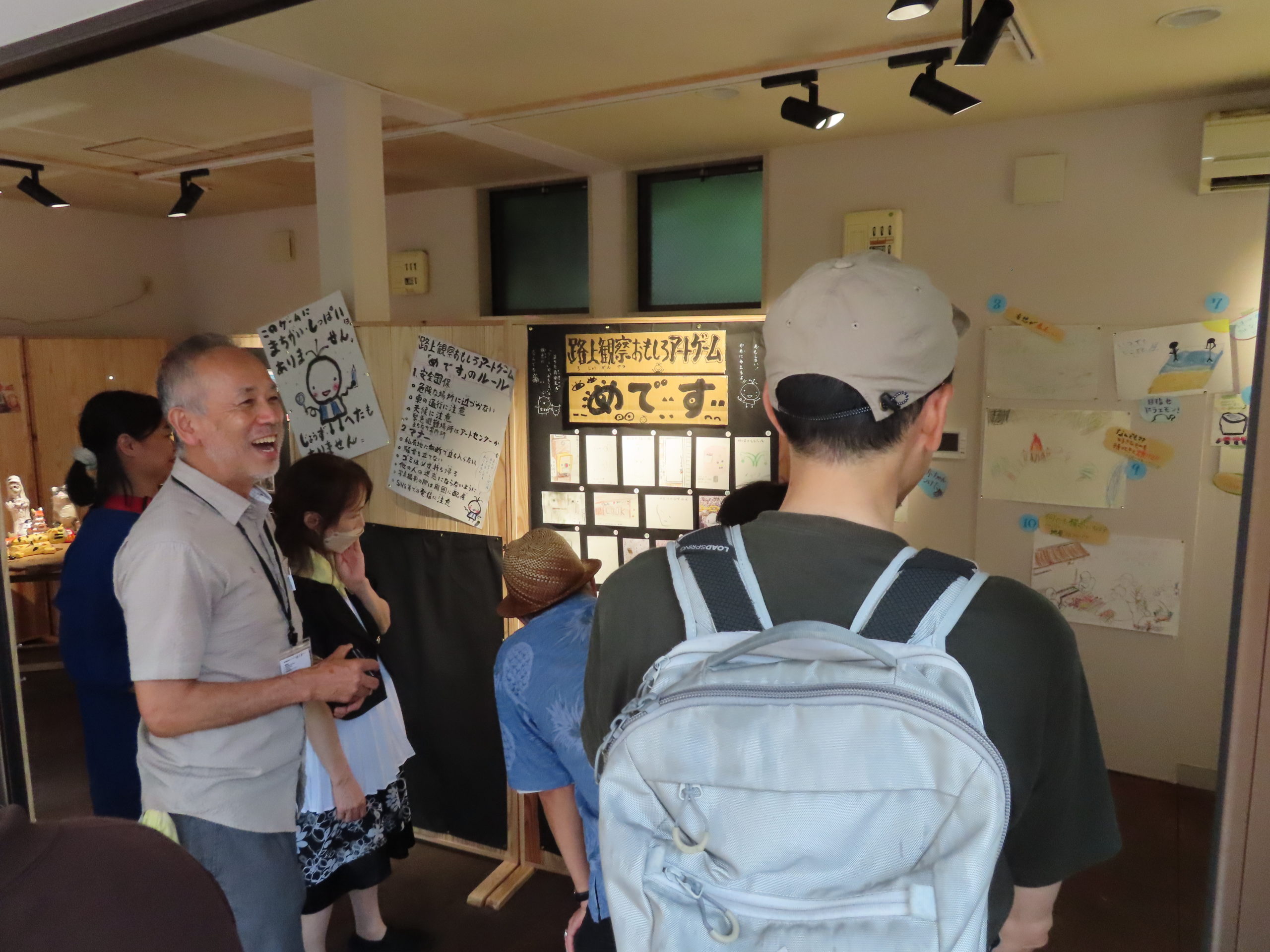 今回は、神明通り近辺にある「顔に見えるもの」を探してきてもらい、ご参加の皆さんが制作したはがきサイズの作品は、アートセンター内に展示させていただきました。