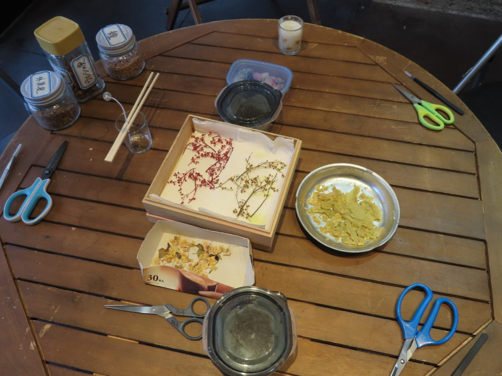 現在流通しているもので、うるし蝋が使われている蝋燭はほとんどありませんが、往時の製法・技術を現代版にアレンジしたワークショップです。