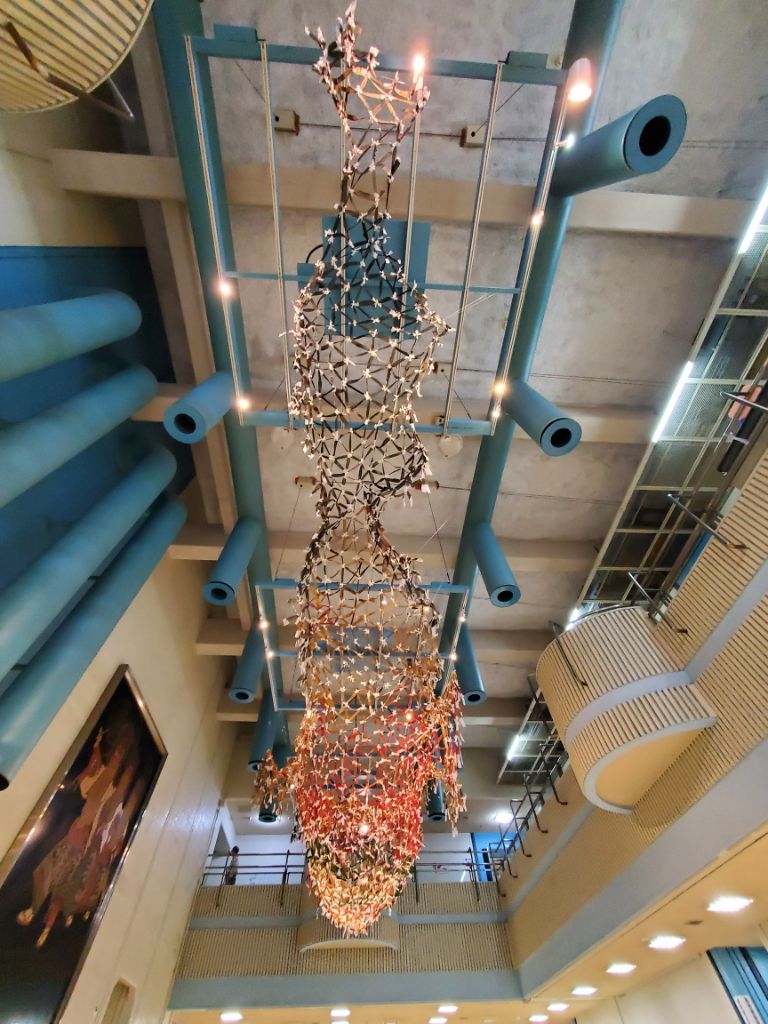 また、作品の制作工程も、短冊状に割いた濾し紙どうしを「結び、繋げ、広げる」というものであり、これは、あいづまちなかアートプロジェクトが、今年、アートセンターを介して実現したいこととリンクする内容でもあります。